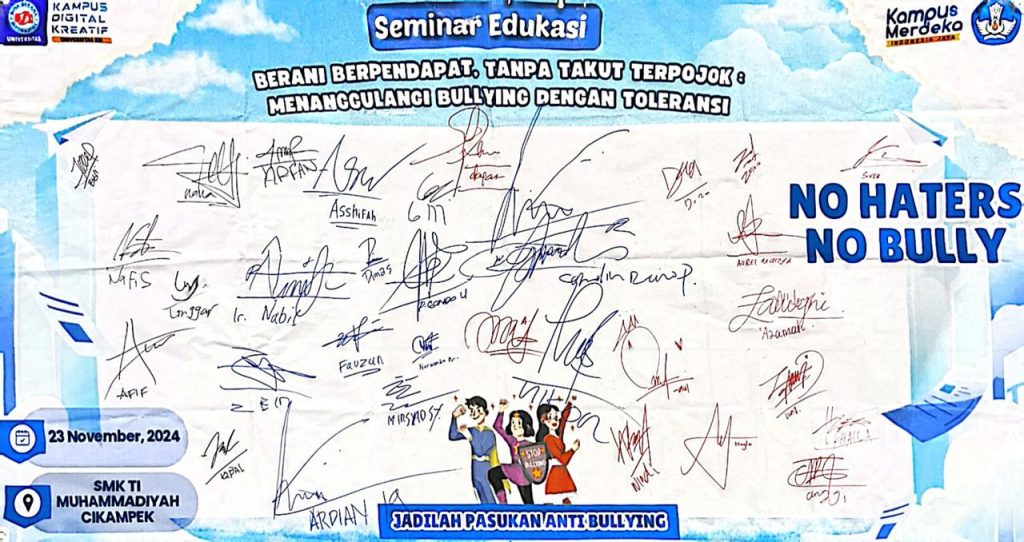 Dalam upaya menciptakan lingkungan sekolah yang aman dan nyaman, SMK TI Muhammadiyah Cikampek bekerja sama dengan [BSI] menggelar seminar bertajuk “Berani Hadapi, Berani Peduli: Edukasi Menanggulangi Bullying di Sekolah” pada acara Sabtu kemarin.