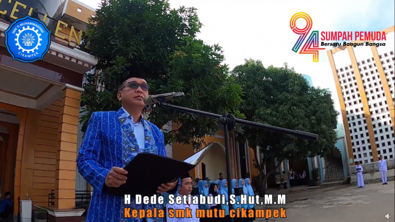 Pembacaan Teks Pancasila Pada Upacara Bendera Memperingati Hari Sumpah Pemuda ke 94 Tahun 2022 di SMK Mutu Cikampek , Jumat (28/10) dipimpin langsung Oleh Bapak Kepala Sekolah SMK Mutu Cikampek H Dede Setiabudi,S.Hut,M.M