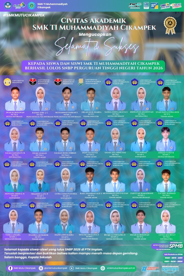 SMK MUTU Cikampek Kembali Torehkan Prestasi, Siswa-Siswi Lolos SNBP ke Universitas Negerismkmutu2 April 2026