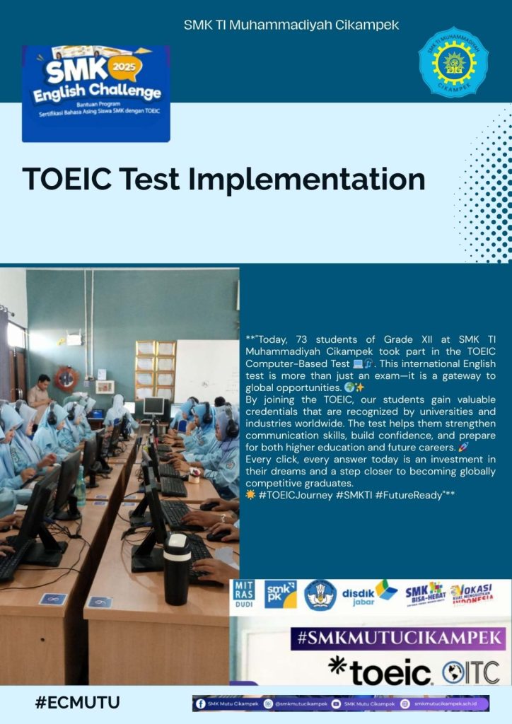 Hari ini sebanyak 73 siswa kelas XII SMK TI Muhammadiyah Cikampek mengikuti Tes TOEIC (Test of English for International Communication). TOEIC bukan sekadar ujian bahasa Inggris, tetapi merupakan gerbang menuju peluang global bagi para siswa.