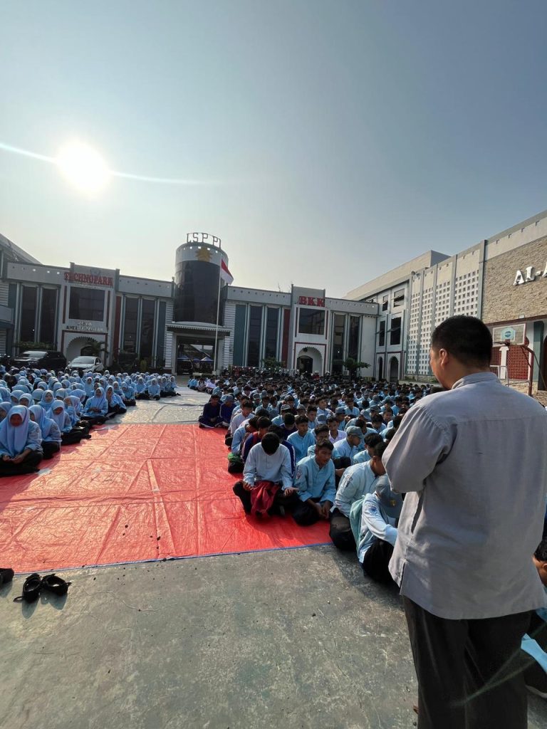 Pengajian rutin yang berlangsung di Lapangan Sekolah ini dikoordinasikan langsung oleh Kepala Bidang Kesiswaan, Ibu Elis Rohaeni, S. Pd., yang secara konsisten memastikan program pembinaan mental dan spiritual siswa berjalan optimal.