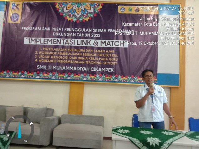 Workshop Pengembangan Program Praktik Kerja Lapangan bersama Dunia Kerja diawasi Pembina Sekolah Smk Ti muhamamdiyah Cikampek Drs Ruswanto .,MPd
