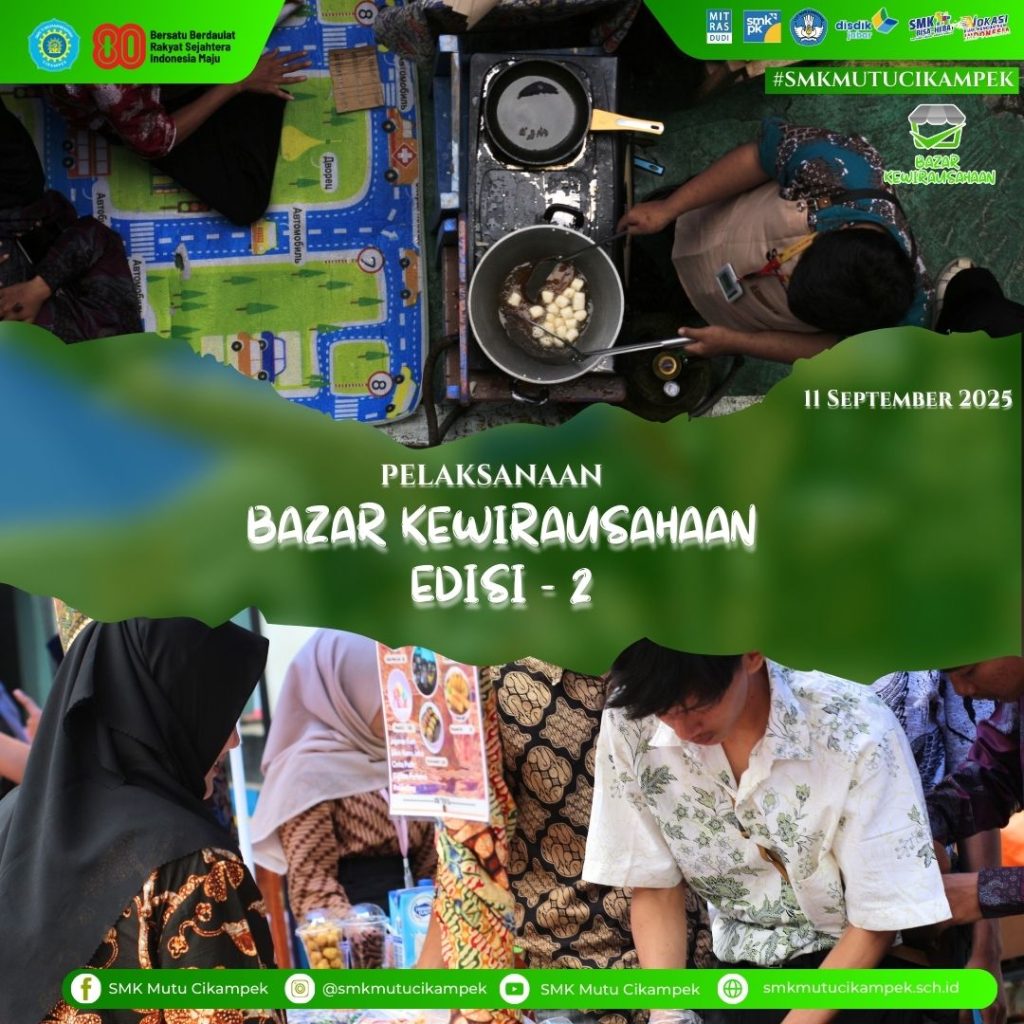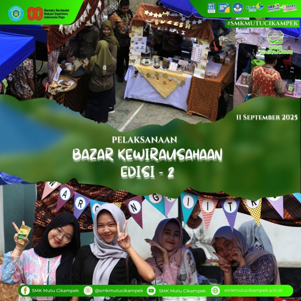 Cikampek, Kamis 11 September 2025 – SMK MUTU Cikampek kembali menyelenggarakan kegiatan Bazaar Kewirausahaan sebagai bagian dari program pembelajaran praktik bisnis dan pemasaran bagi siswa kelas XII.